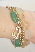 さわやかなグリーンと透け感のあるベージュのストーンがとっても綺麗なブレスレットです。(*^^)v