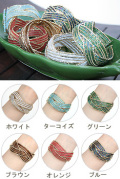 ▲インド製 ワイヤーブレスレット(ホワイト/ターコイズ/グリーン/ブラウン/オレンジ/ブルー)