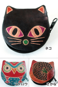 モチーフは「フクロウ」「さかな」「ネコ」の3種類。カラフルな色合いと革の質感でエスニックな雰囲気たっぷり♪