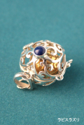 シルバー製のバスケットの中に、真鍮のボールが入ったタイプで、ラピスラズリがトップに付いていてとても綺麗☆