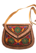 ラクダ革に花がら刺しゅうがとっても可愛い、エスニックな魅力たっぷりの本革ポシェットです。