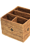 散らかりがちな小物も整理しやすい間仕切りの付いた角型のアタ製小物入れです。