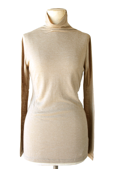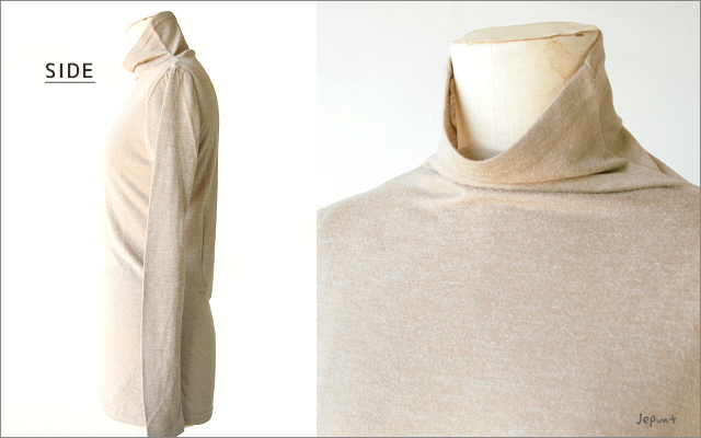 ▲タートルネックの長袖Tシャツ(ベージュ)前後。