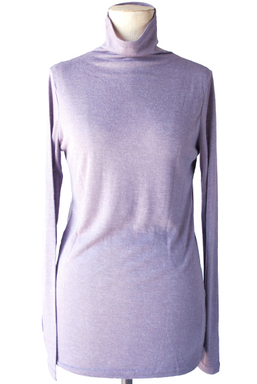▲タートルネックの長袖Tシャツ(ライトパープル)前後。
