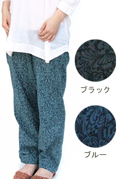 ▲バティックプリントのコットンパンツ(ブルー)