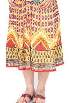 インドらしいエスニックなプリントが魅力的なひざ丈スカートです。