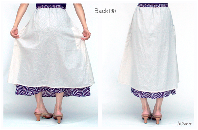 外側の白スカートは、柄スカートの後ろ身ごろに縫い付けてあります。