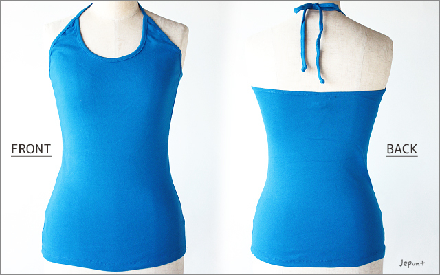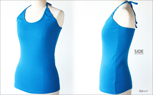 ▲ホルターネック キャミソール(ブルー)。重ね着の差し色にもおすすめ。