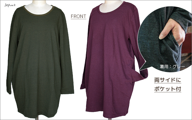 ゆったり着られるロング丈で、コットン素材のポケット付き長袖Tシャツです。