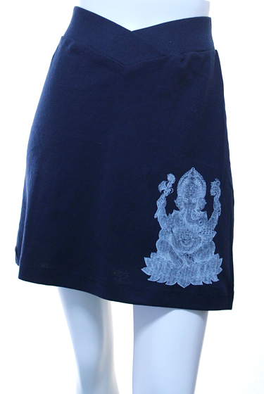 エスニックファッションの人気柄ガネーシャプリントのストレッチミニスカートです。