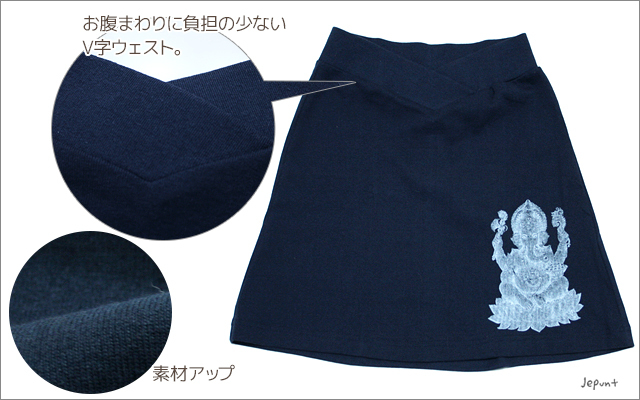エスニックファッションの人気柄ガネーシャプリントのストレッチミニスカートです。 履き心地の良い素材にシンプルデザインで、一枚でも重ね着でもOK♪