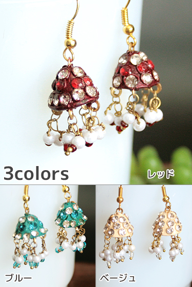 ゆらゆら傘ピアス(レッド/ベージュ/ブルー)