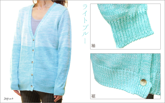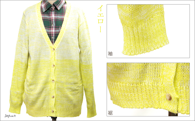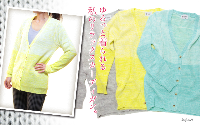 やさしい色合いのグラデーションがきれいなニットカーディガンです。