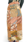 古布(こふ)のバティックを使ったパッチワークスカート、