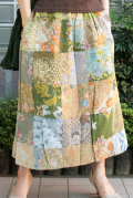 古布(こふ)のバティックを使ったパッチワークスカート、
