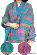 ネパールから入荷したのは、ブルー/グリーン/パープルのキレイめカラーで3色展開の、男女兼用 大判ショールです。