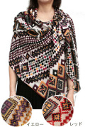 ▲人気のネイティブ柄大判ストールは、イエロー系、レッド系、パープル系の3種類があります。