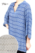 レーヨン素材で柔らかくサラリとした肌触りが嬉しい、幾何学模様のクルタシャツです。