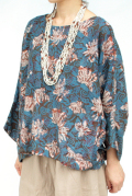 ▲植物モチーフのエスニック柄は派手すぎない大人色で、落ち着きのある印象です。男性の方にも似合いそう。