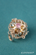 シルバー製のバスケットの中に、真鍮のボールが入ったタイプで、ピンクジルコニアがトップに付いていてとても綺麗☆