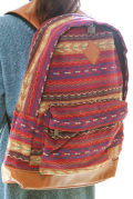 色鮮やかなエスニック柄が個性的なリュックサックは、毎日使っても飽きません。