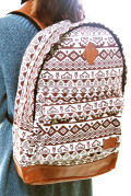 オフホワイトにブラウンが馴染むネイティブ柄リュックサックは、毎日使っても飽きません。
