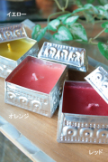 キャンドルが入ったアルミのソカシは小さくて可愛い(*^^*) 色は「オレンジ」「レッド」「イエロー」の3色あります。