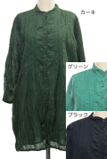 シックな色をそろえた、クリンクル(しわ)加工のピンタックロングシャツです。