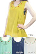 コットン100%素材で肌触りが柔らかく、サラリとしたノースリーブトップスです。