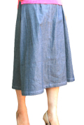 ▲薄手のデニムスカートはは季節を問わず使え、広がり過ぎないきれいなラインが大人カジュアルスタイルを作ります。