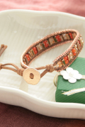 ▲まるでピンクゴールドみたいなメタルビーズにオレンジのビーズが好相性。メタルボタンの留め具がポイントです。